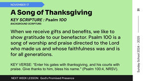 SUNDAY SCHOOL - November 17th, 2024
